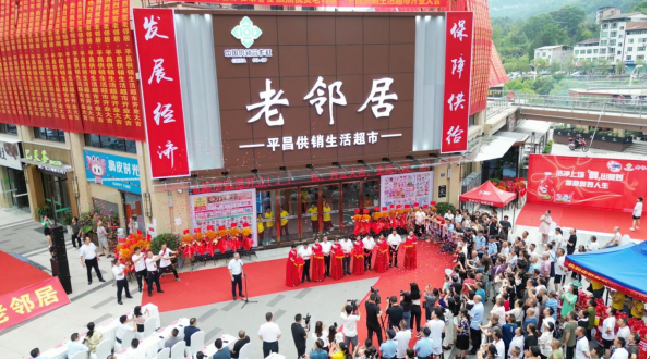 四川省供銷投資集團(tuán)黨委書記、董事長(zhǎng)茍學(xué)川宣布“老鄰居•平昌供銷生活超市”正式開業(yè),四川省供銷社企業(yè)發(fā)展與金融服務(wù)處處長(zhǎng)楊韜等領(lǐng)導(dǎo)莊嚴(yán)剪斷彩帶,迎進(jìn)第一批近1000人的消費(fèi)客人。