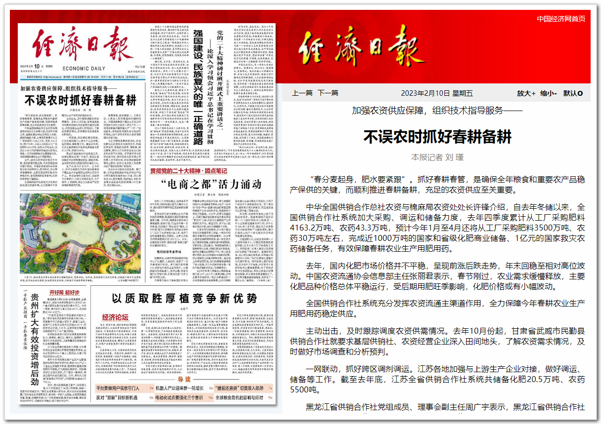 全國供銷合作社系統(tǒng)充分發(fā)揮農(nóng)資流通主渠道作用,全力保障今年春耕農(nóng)業(yè)生產(chǎn)用肥用藥穩(wěn)定供應(yīng)。