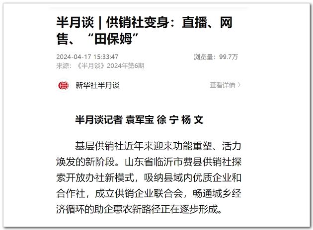 “供銷社利用渠道優(yōu)勢,避開中間商收購倒賣,保障農產(chǎn)品在收購端高于當?shù)厥袌鰞r,在零售端低于市場價,使農民和消費者的利益都得到保障。”王慶華表示,2024年,費縣供銷社將以開放辦社為抓手,持續(xù)建設數(shù)字供銷運營平臺,暢通縣鄉(xiāng)村三級現(xiàn)代商貿流通服務網(wǎng)絡,不斷筑牢供銷社“為農、務農、姓農”根基。