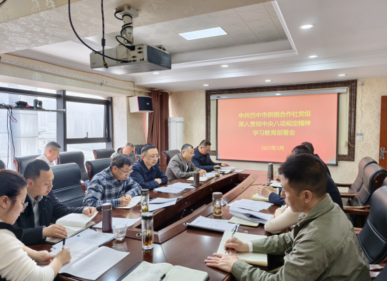 會議傳達(dá)學(xué)習(xí)了市委黨的建設(shè)領(lǐng)導(dǎo)小組(市委市政府黨風(fēng)廉政建設(shè)責(zé)任制領(lǐng)導(dǎo)小組)會議暨全市黨建引領(lǐng)基層治理協(xié)調(diào)機(jī)制2025年第一次全體會議精神,組織學(xué)習(xí)了《省供銷社貫徹落實(shí)中央八項(xiàng)規(guī)定精神和省委、省政府規(guī)定的實(shí)施辦法》《巴中市深入貫徹中央八項(xiàng)規(guī)定精神學(xué)習(xí)教育有關(guān)問題答復(fù)(一)》等文件精神,審議通過了市供銷社《深入貫徹中央八項(xiàng)規(guī)定精神學(xué)習(xí)教育的實(shí)施方案》。