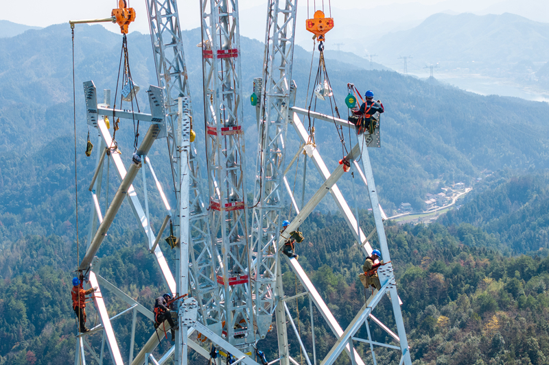 當(dāng)日,在湖南省益陽(yáng)市安化縣冷市鎮(zhèn),湖南省送變電工程有限公司電力工人抓緊推進(jìn)“寧電入湘”工程組塔工作,力爭(zhēng)項(xiàng)目早日建成運(yùn)營(yíng)。